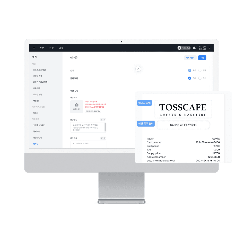 매장에 맞는 영수증 커스텀 설정